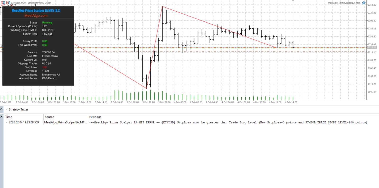Sometimes the EA Dashboard shows “Running”, but the EA may still write error or warning messages in the Expert tab.