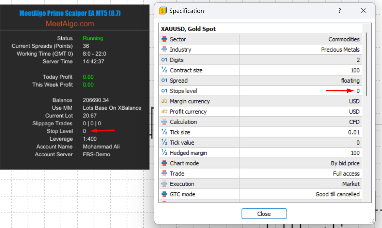 ✅ Required: StopLevel = 0