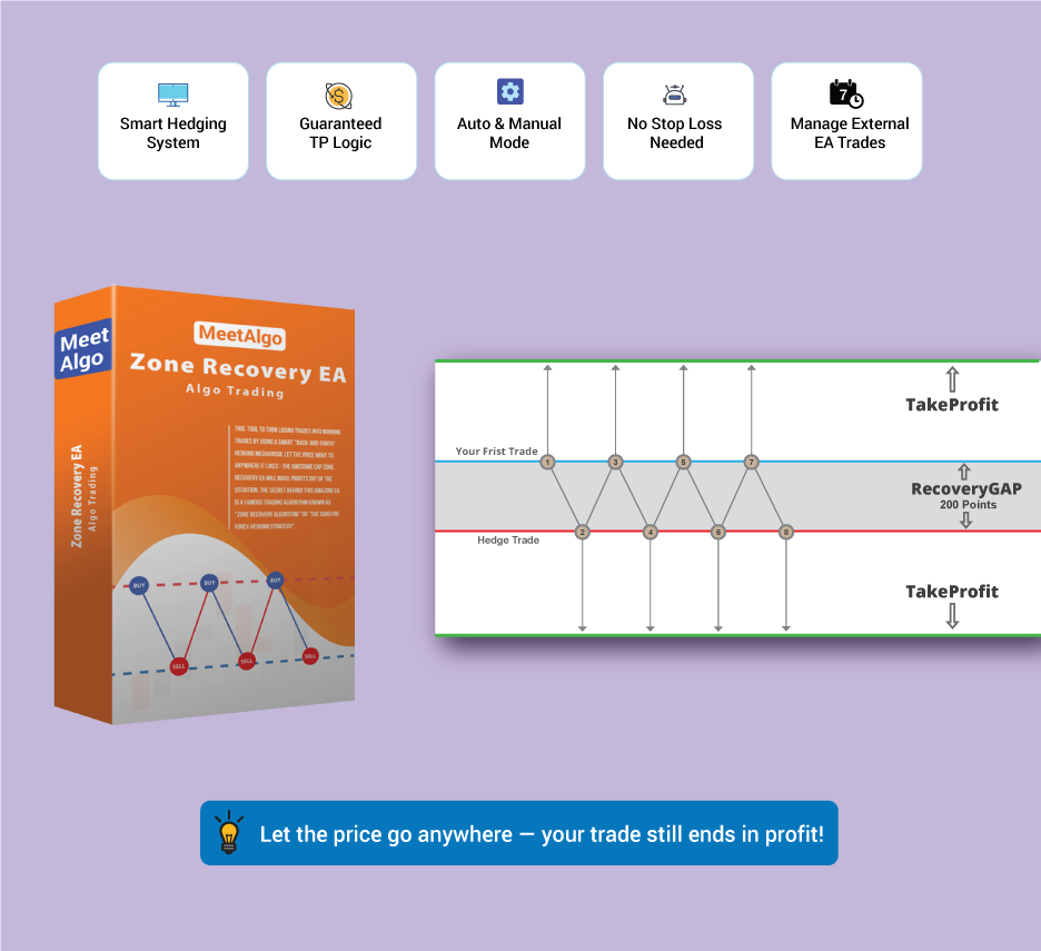 Zone Recovery EA uses smart hedging to recover losses—turns bad trades into winners with the "Never Lose Again" method.